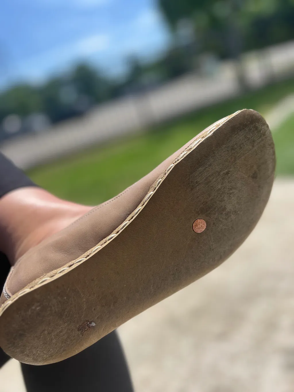 We also don’t apply them to sandals. Sandals would be subject to sunshine a lot and sun can darken the coppers with time. The cons of the leather outsoles are they are slipperier than the rubber outsoles. We don’t use any glue or chemical materials, we hand-sew leather outsoles to the shoe.