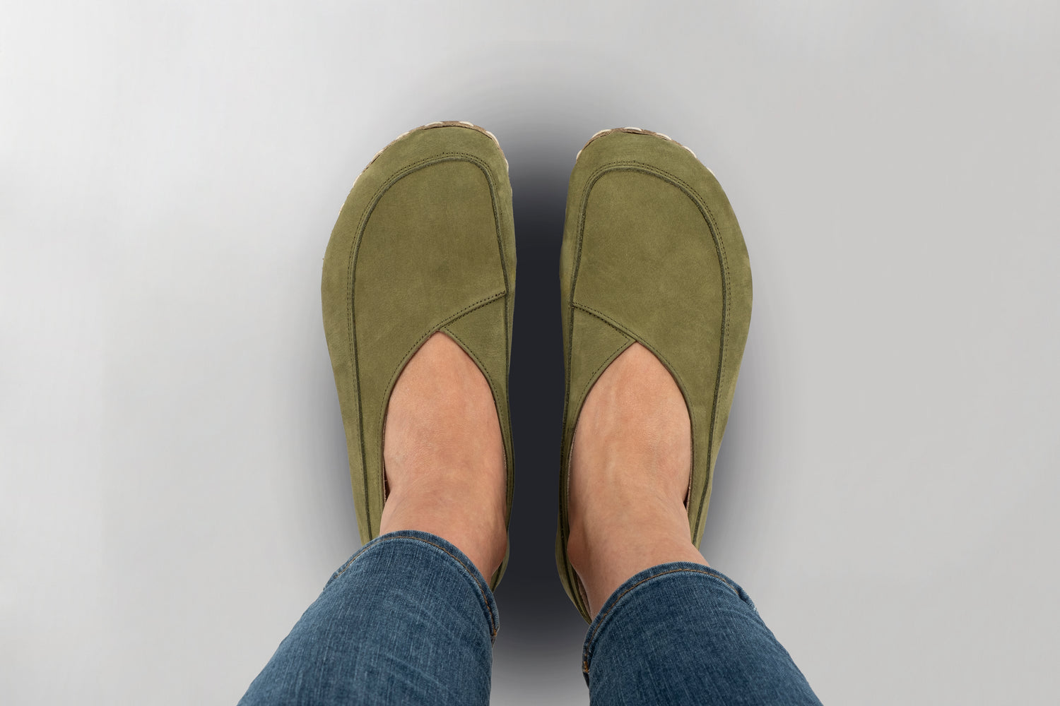 Olive Green Barefoot Cross Ballet Flats - WOMEN / EU 34 / 3.5 - 4 / Leather Outsole with Copper Rivet is backordered and will ship as soon as it is back in stock.