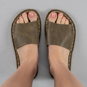 Women's Green Barefoot Slide Sandals - WOMEN / EU 34 / 3.5 - 4 / Leather Outsole without Copper Rivet is backordered and will ship as soon as it is back in stock.