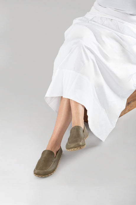 Women's Khaki Green Suede Moccasins