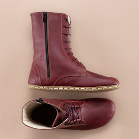 Hohe Barefoot-Stiefeletten für Herren in Burgunderrot