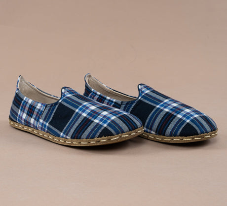 Blau karierte Barfußschuhe für Herren