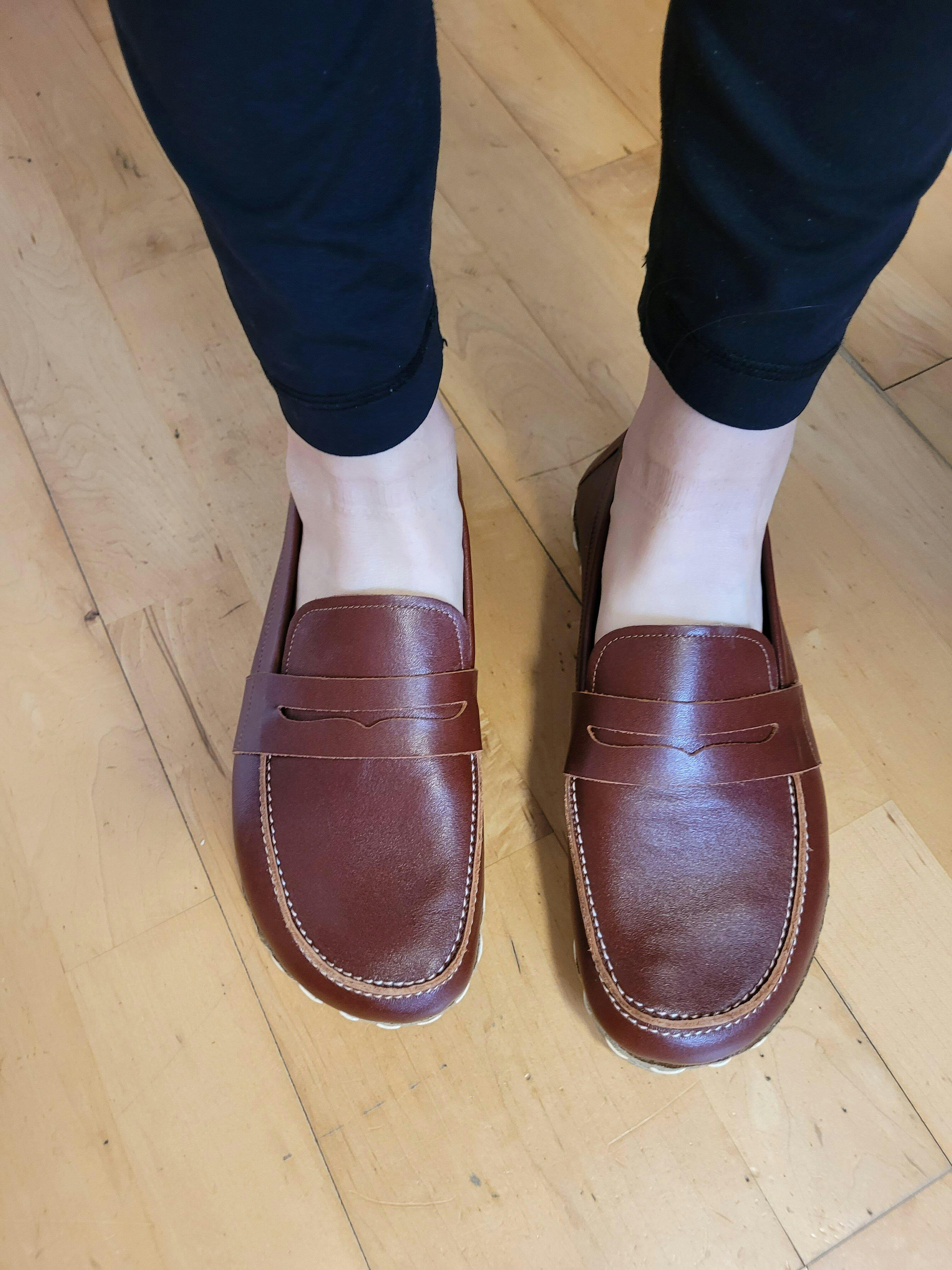 I always wear a size 10 shoe and I bought a size 10 tan Oxford they feel a little bit short, but I think after I wear them a while and they conform to my foot that it’ll be good. I wouldn’t want it too big in writing up on my heel when I walk. The shoes are beautiful and very well-made. I warned them hiking in the woods and they worked well. They are just a little slippery, but that can’t be helped because I didn’t want to man-made material on my soul or my shoe. Toni.