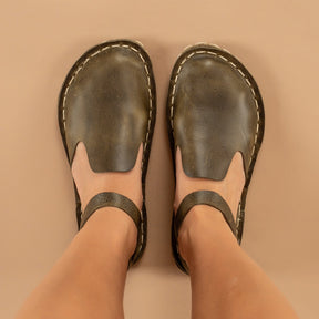 Kadınlar için Yeşil Kapalı Burunlu Yalınayak Sandaletleri - KADIN / EU 34 / US 3.5 - 4 / Bakır Perçinsiz Deri Dış Taban ön sipariş verildi ve stoklara tekrar girdiğinde kargoya verilecek.